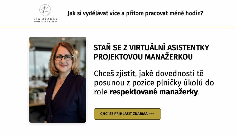 STAŇ SE Z VIRTUÁLNÍ ASISTENTKY PROJEKTOVOU MANAŽERKOU A VYDĚLÁVEJ VÍC ZA MÉNĚ HODIN