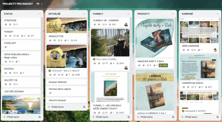 V roce 2015 jsem založila svoji první firmu Projekty pro radost s.r.o. a od té doby se věnuje online marketingu a projektovému řízení. Už více než deset let pomáhám podnikatelům a jejich týmům proměnit chaos v přehledném systému, který šetří čas, energii i peníze.